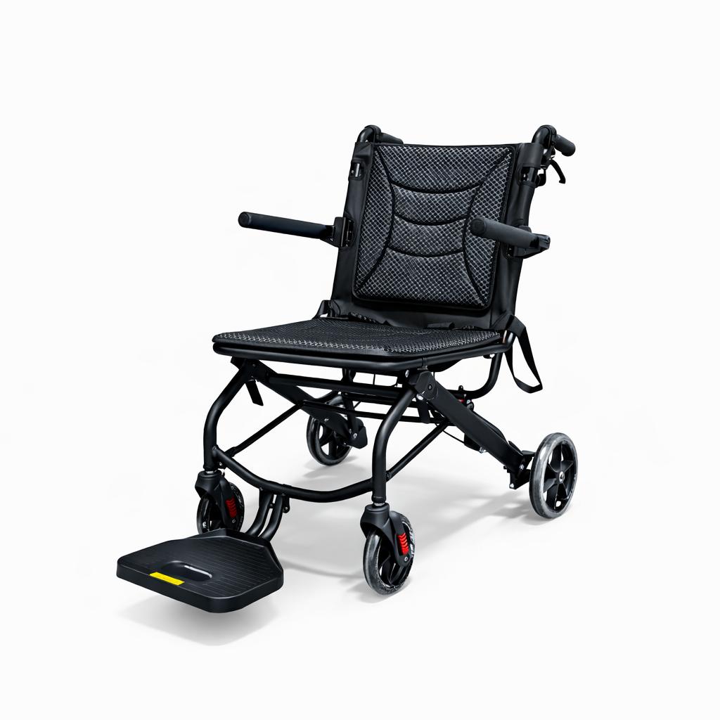 The Happy Travel Buddy combines simplicity, safety, and portability in a compact transit wheelchair — perfect for mobility support without the bulk.